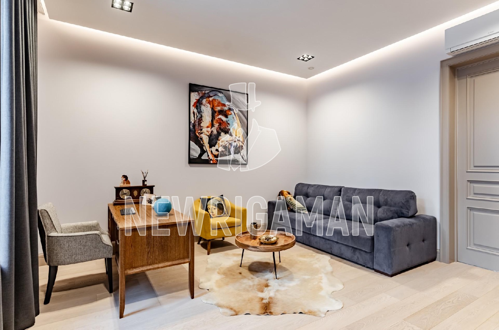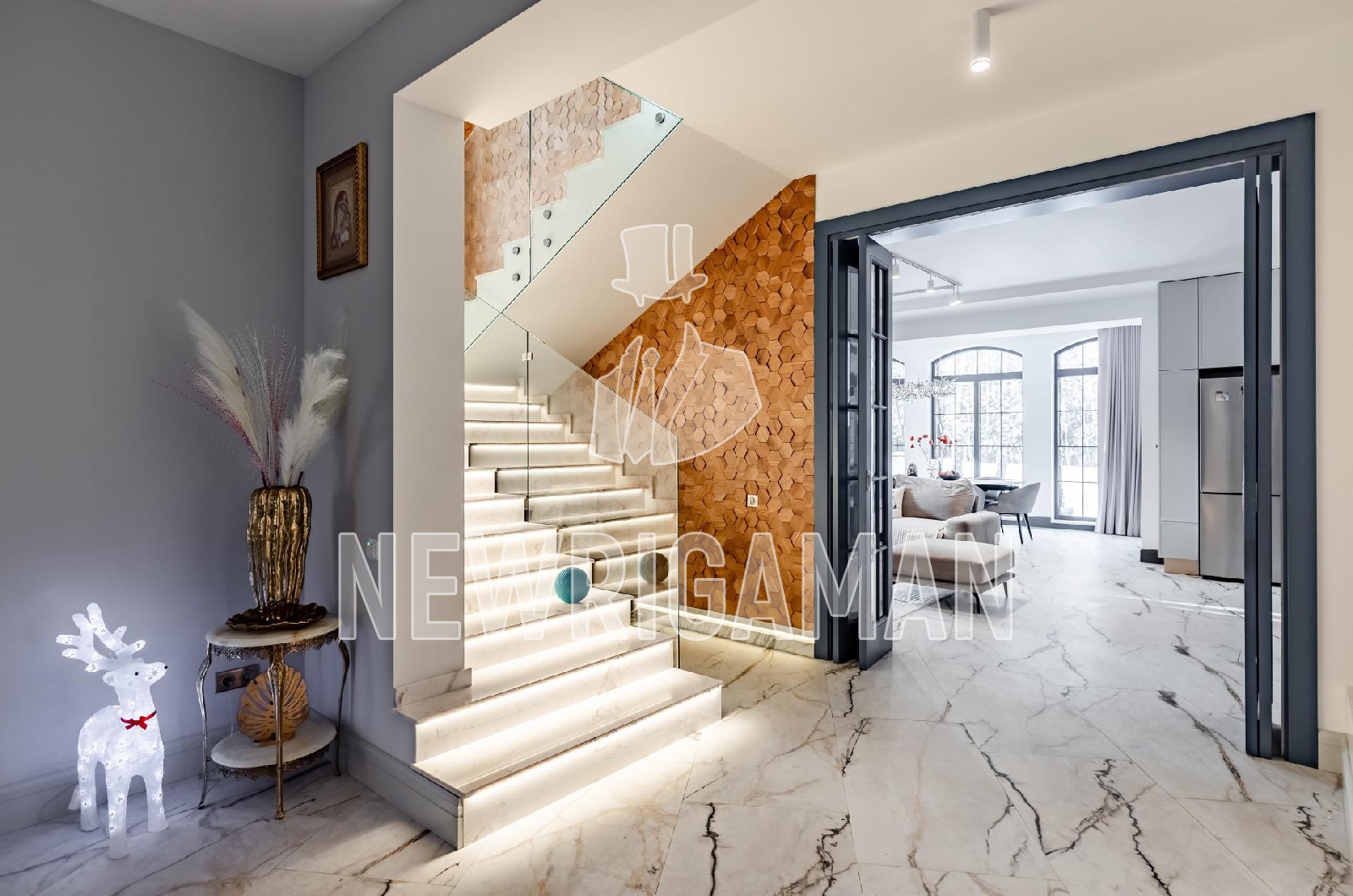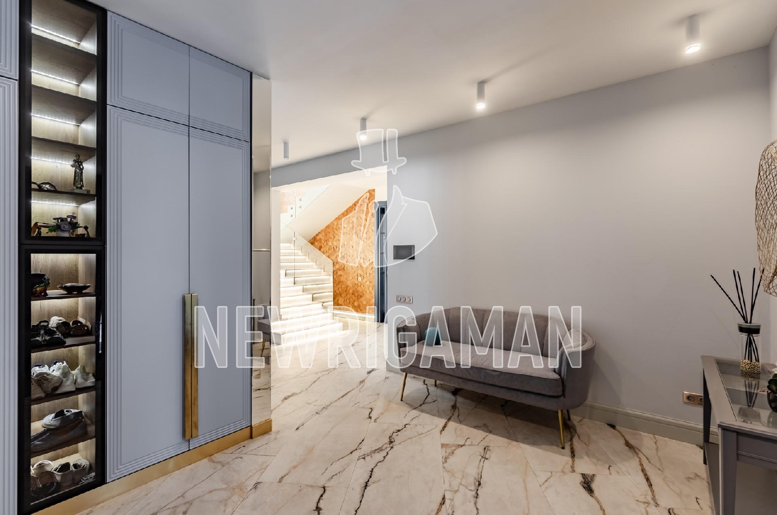 1 этаж - зона отдыха с большим камином и вторым светом, спортзал, хаммам, парилка, душевая, 15-метровый бассейн, санузел и прачечная. В хозяйственной зоне размещены кухня, гостевая спальня, с/у, выходы в паркинг и на улицу.
