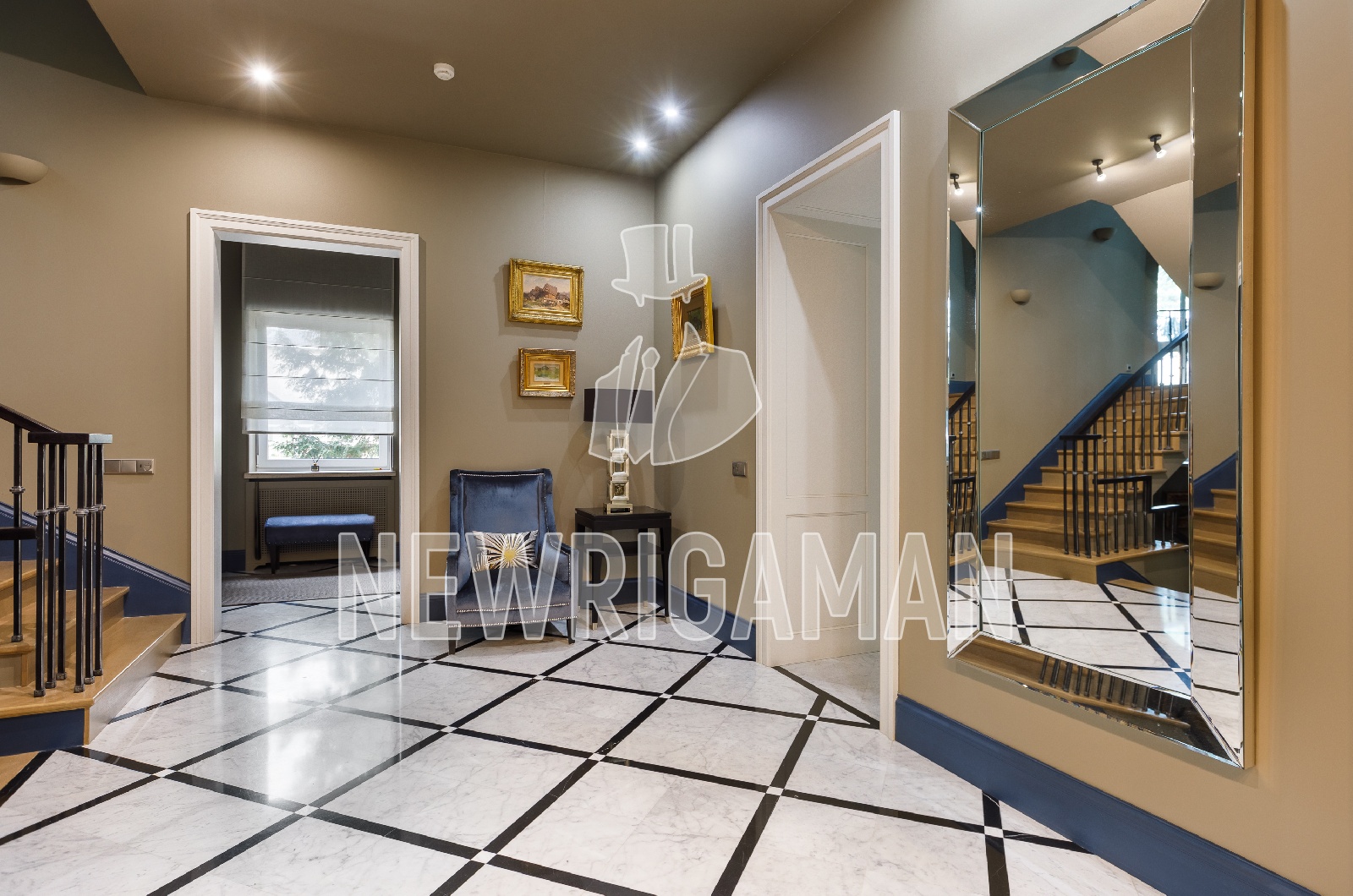 Цоколь - 3 гардеробные, с/у, гостевая спальня, постирочная, бойлерная, кладовая с выходом на улицу,
