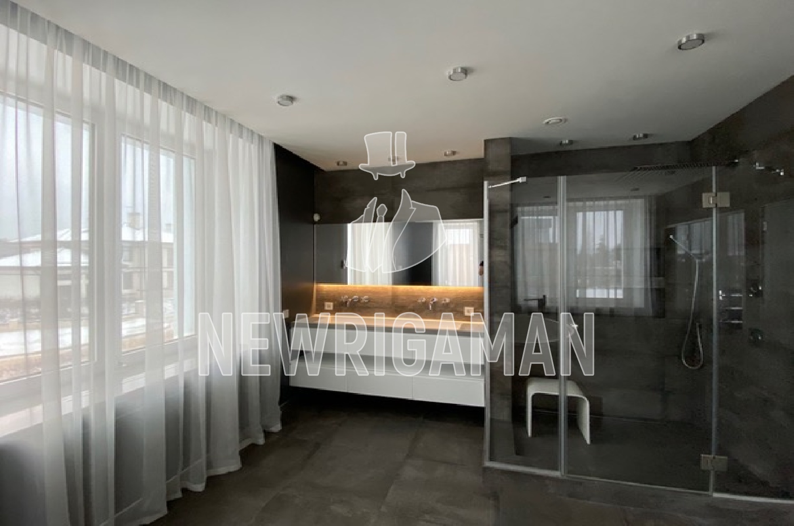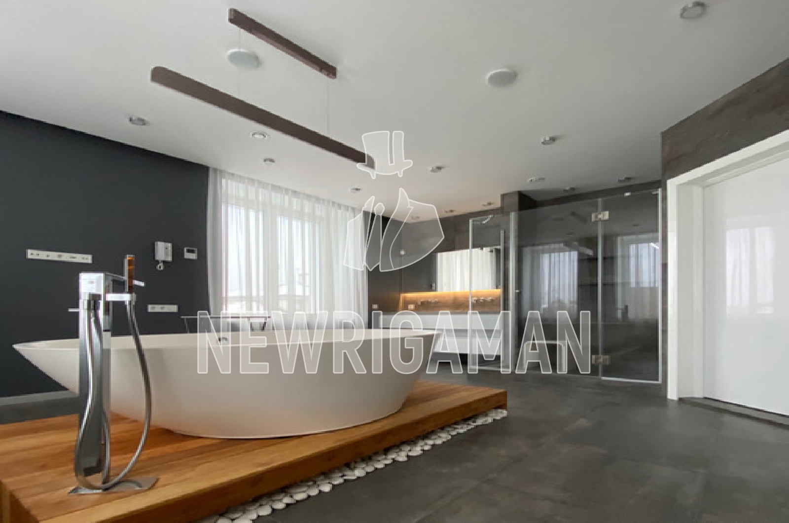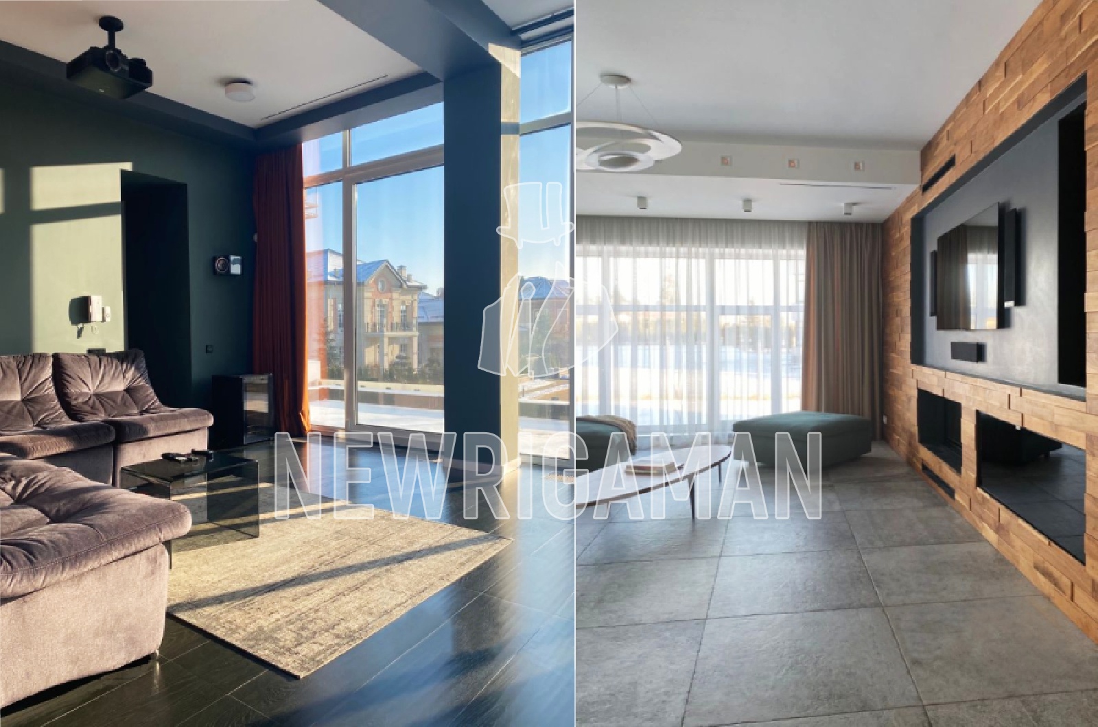 1 этаж - кухня-столовая, гостиная с камином и домашним кинотеатром, кабинет с с/у, спальня со своим с/у и гардеробной, подсобное помещение, постирочная, спорт зал с беговой дорожкой и шведской стенкой;
