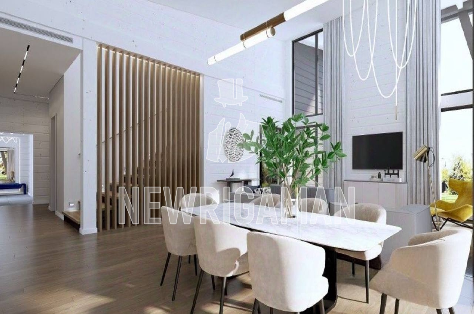 1 этаж - прихожая, гардеробная, с/у, кухня-столовая-гостиная с выходом на террасу, кабинет, спальня с с/у, постирочная, котельная, кладовая для спортивного и садового инвентаря, навес для авто,
