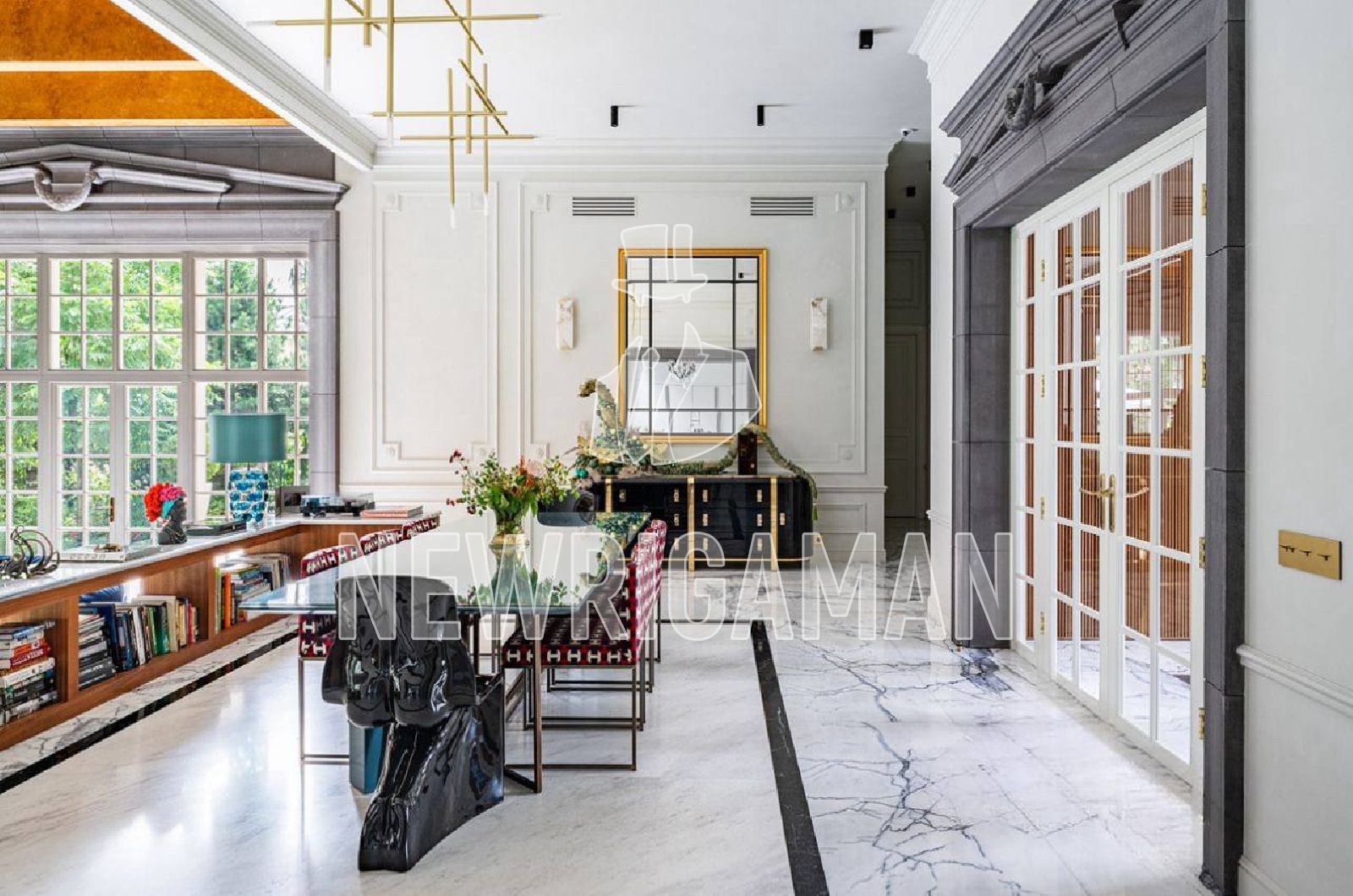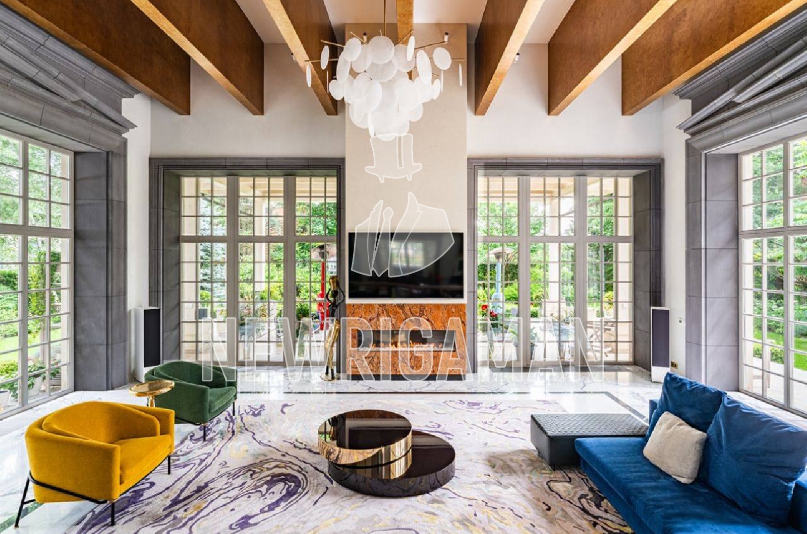 Продажа загородного коттеджа площадью 1150 кв.м. Коттеджный поселок Раздоры-2. Рублево-Успенское шоссе 5 км от МКАД. Дом построен в 2 этажа, под ключ. Дом выдержан в стиле современной классики. В строительстве и отделке интерьеров использовались качественные натуральные материалы (мрамор, дерево, стекло, металл). Установлены система приточно-вытяжной вентиляции, увлажнение, кондиционирование. Мебель от известных мировых брендов.