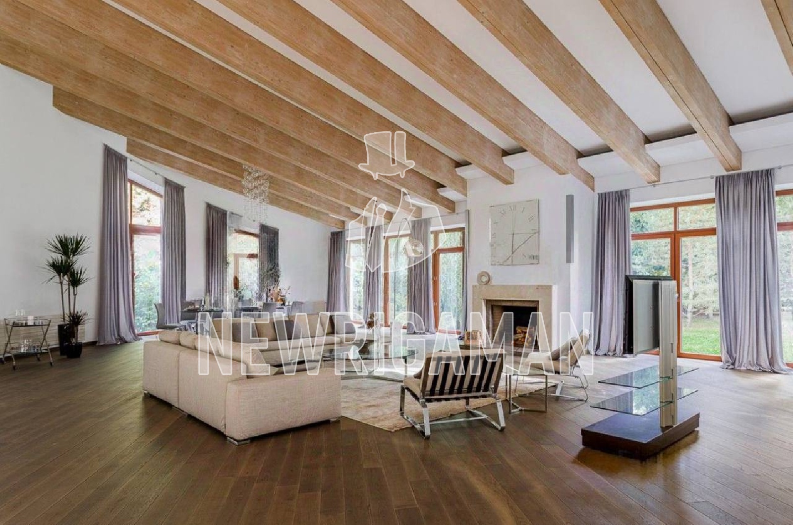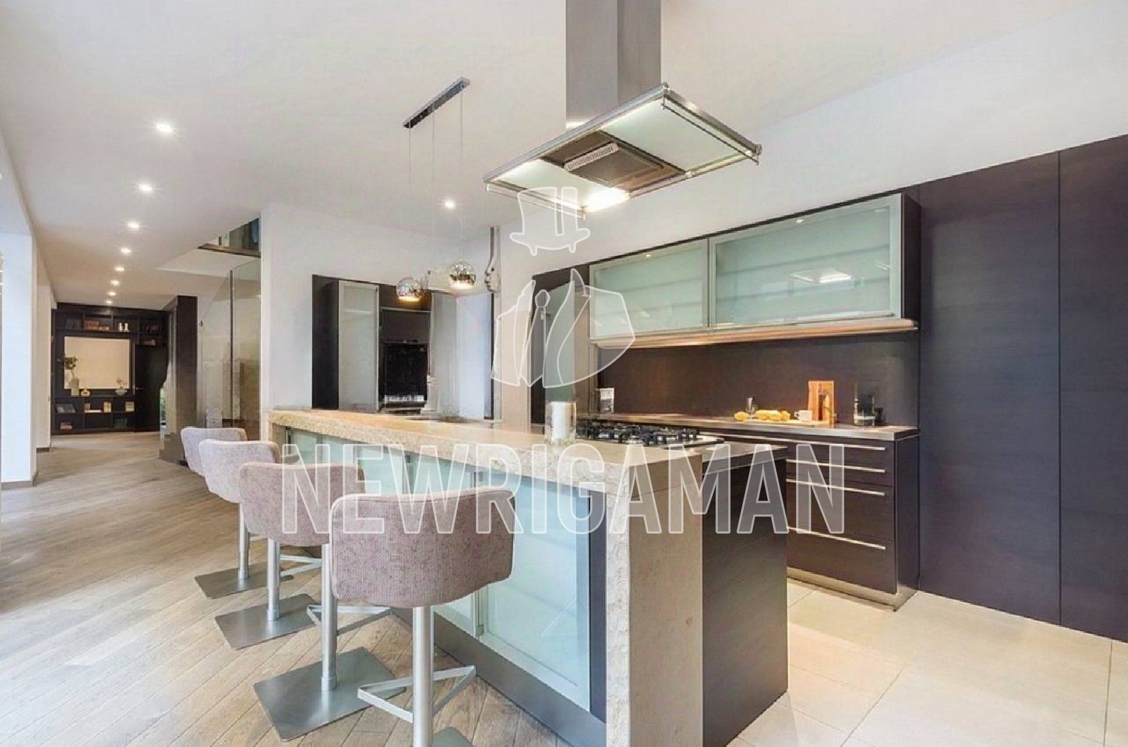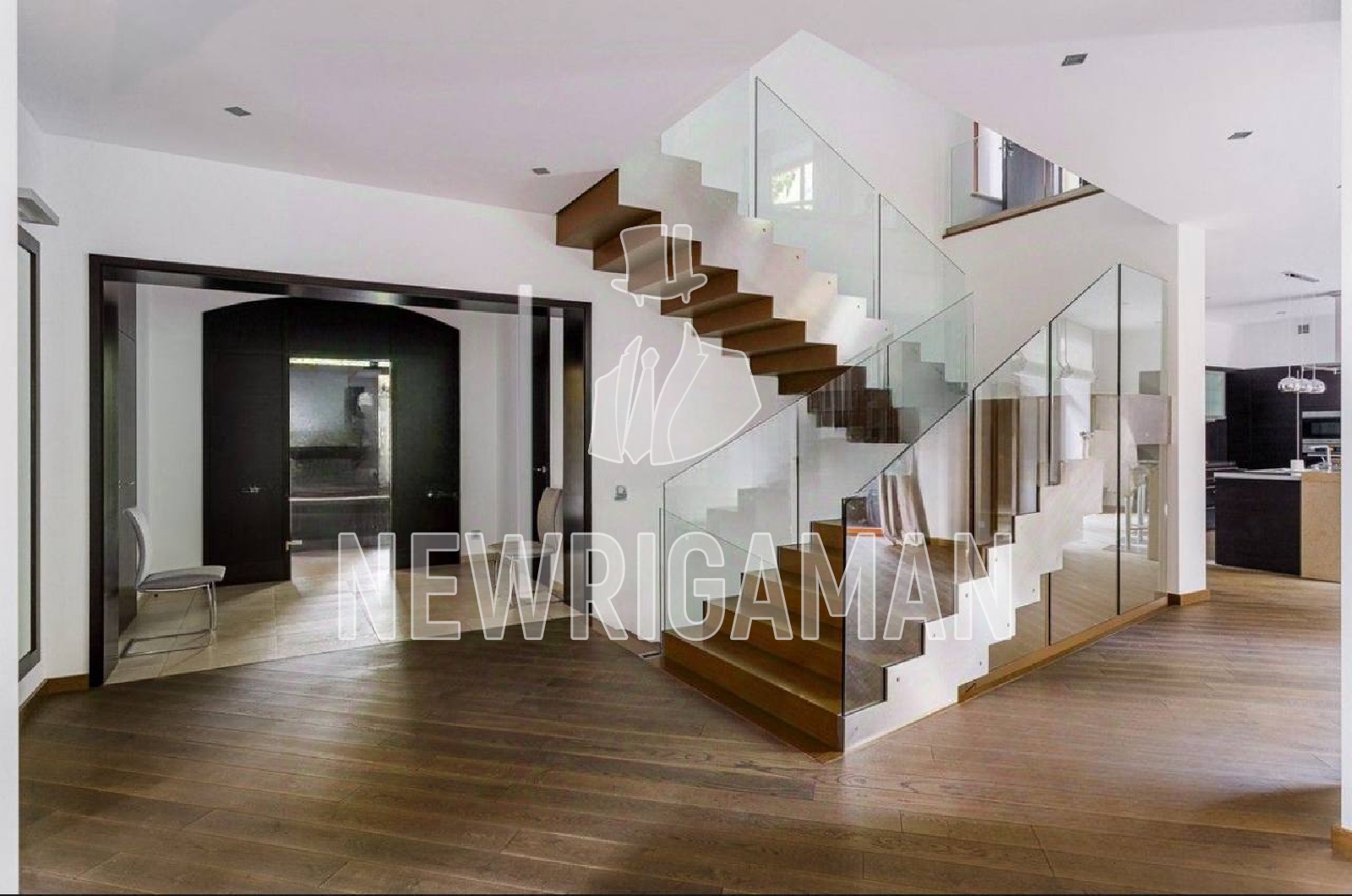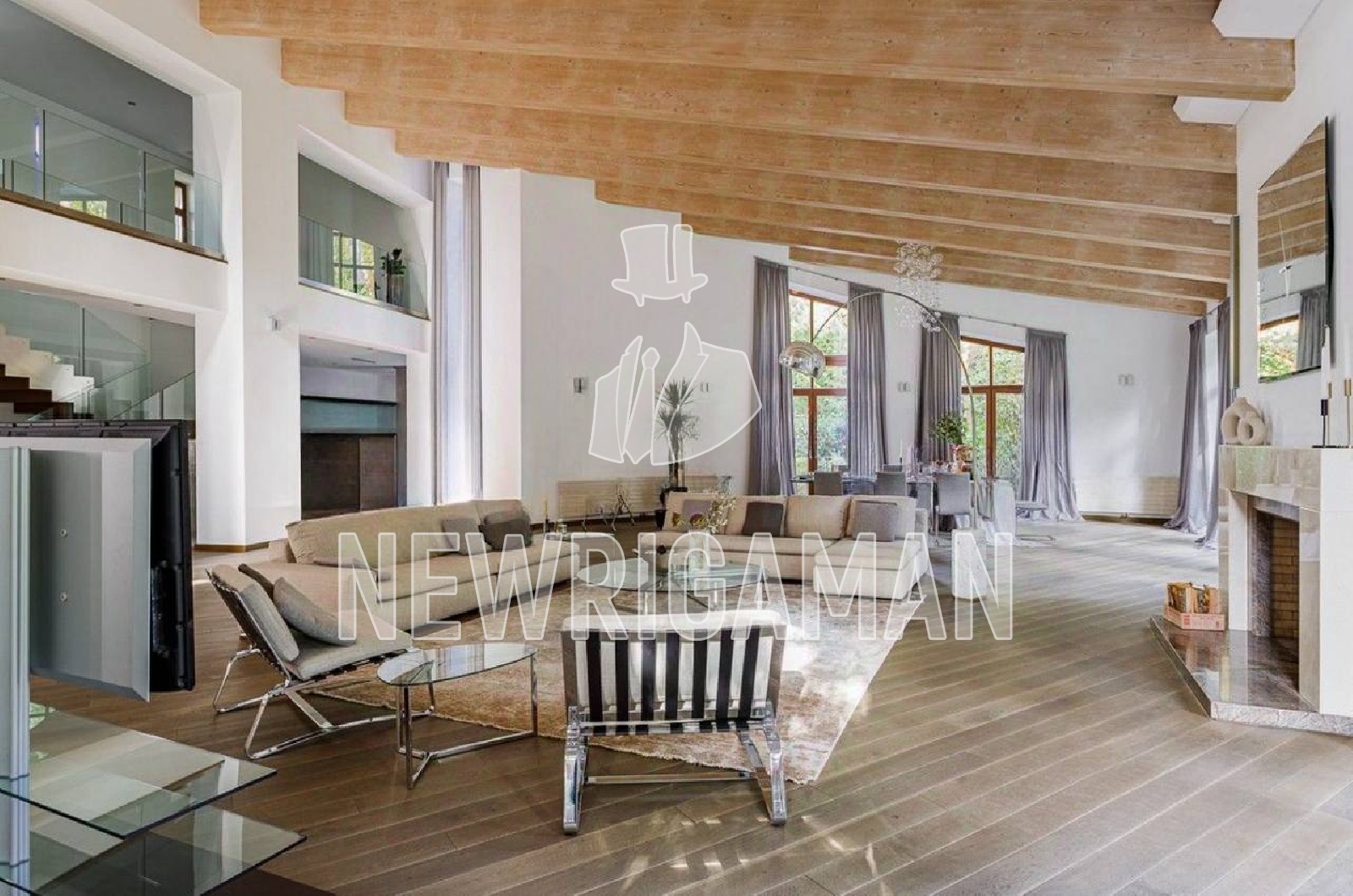 1 этаж - холл, 2 гардеробные, лифт, с/у, гостиная 140 кв.м., кухня - столовая. СПА-зона: бассейн, паровая кабина, с/у, квартира для персонала, терраса.