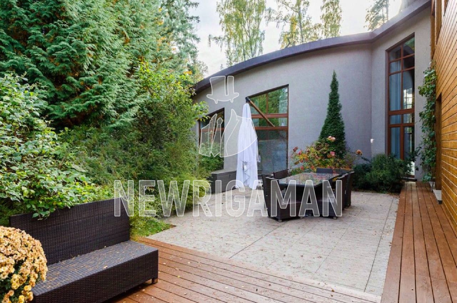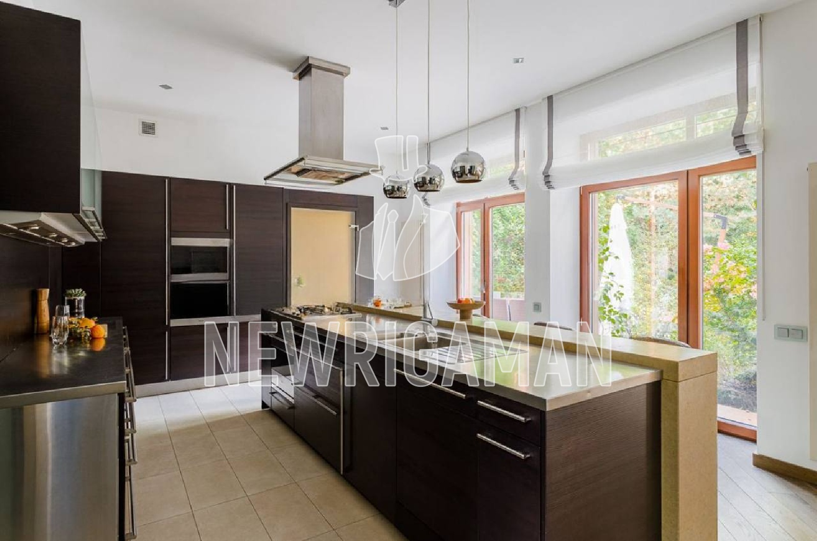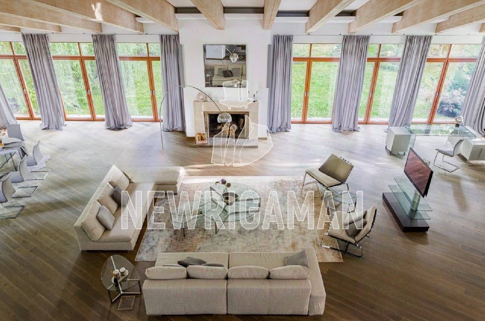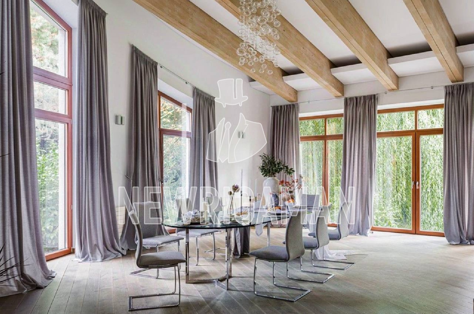 1 этаж - холл, 2 гардеробные, лифт, с/у, гостиная 140 кв.м., кухня - столовая. СПА-зона: бассейн, паровая кабина, с/у, квартира для персонала, терраса.