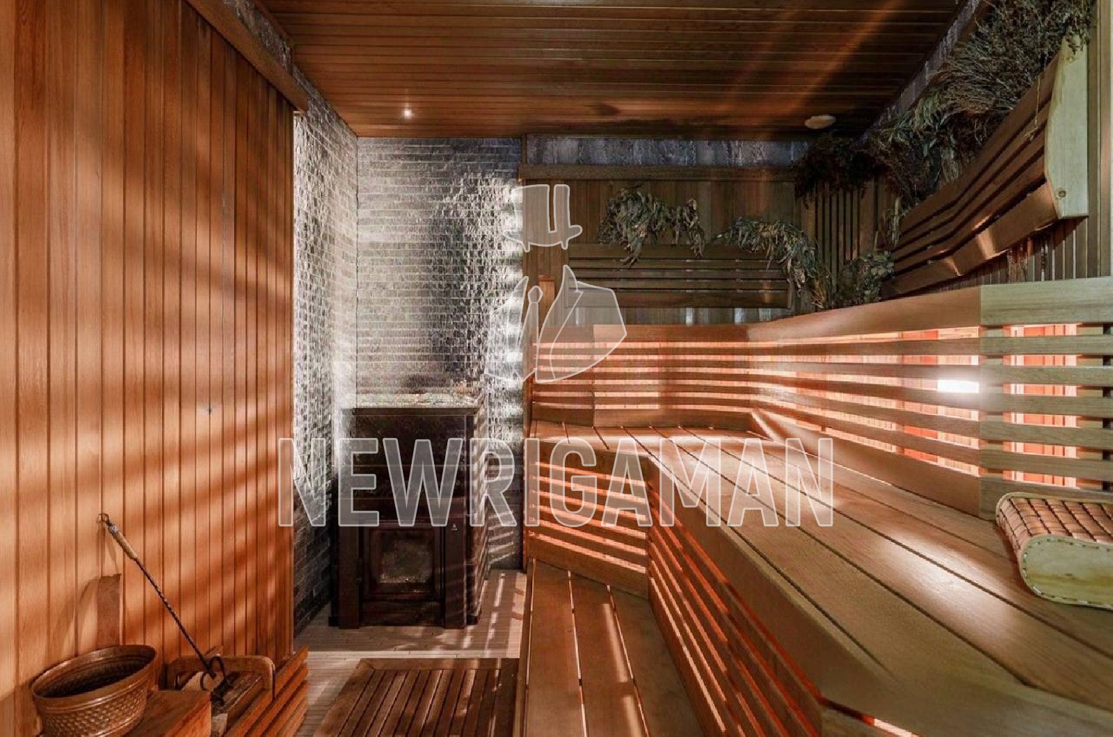 Цоколь - дровяная баня с соляными плитами, купель, душ-шарко, комната отдыха, бильярдная, винный погреб, электрощитовая, кладовая, котельная, постирочная, технические помещения, лифт.