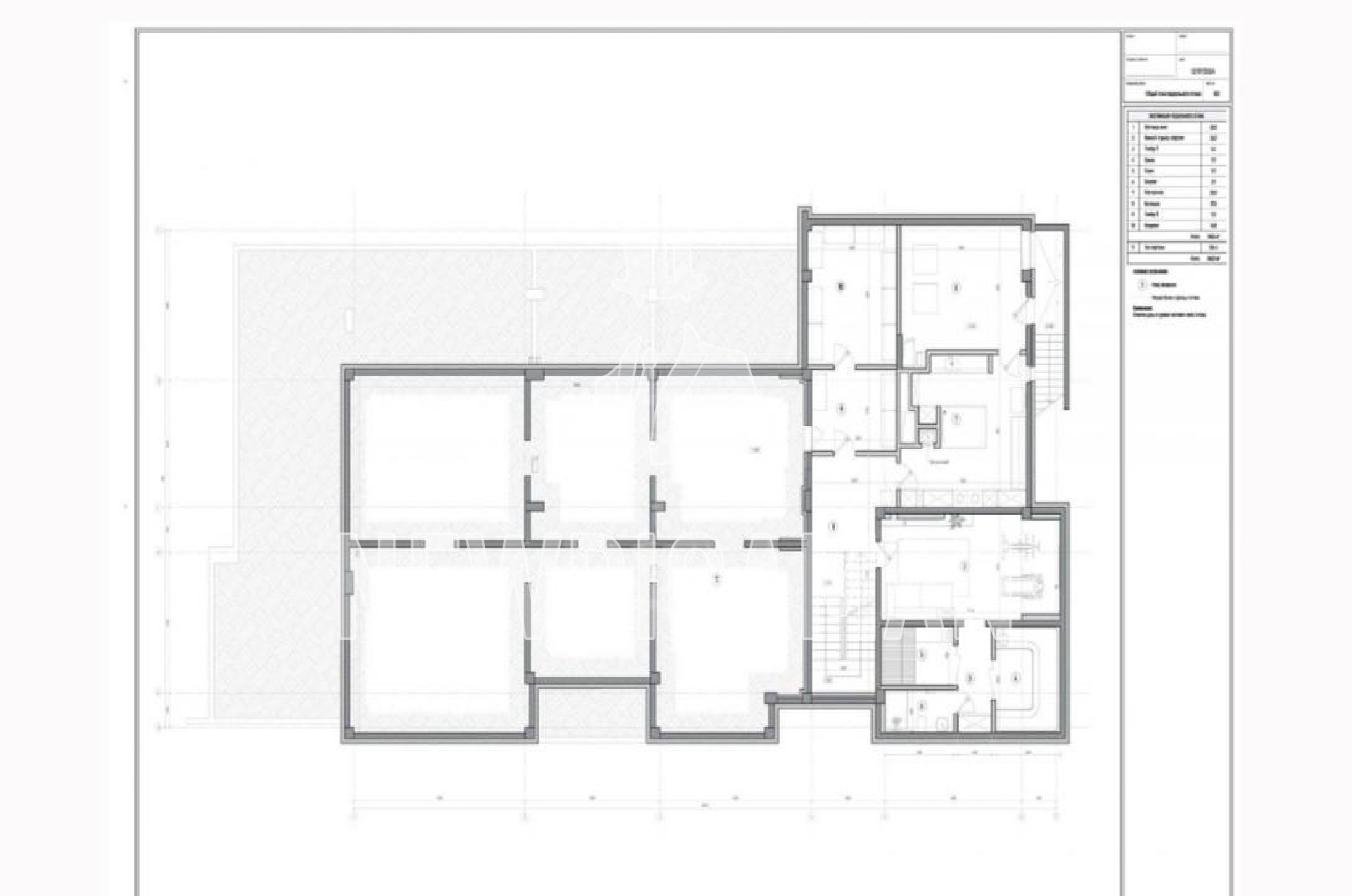 1 этаж - холл, гардеробная, кабинет c с/у, гостиная, столовая, кухня, рабочая кухня, c/у, спальня с с/у, кладовая, комната персонала с кухней и с/у, гараж на 2 м/м,
