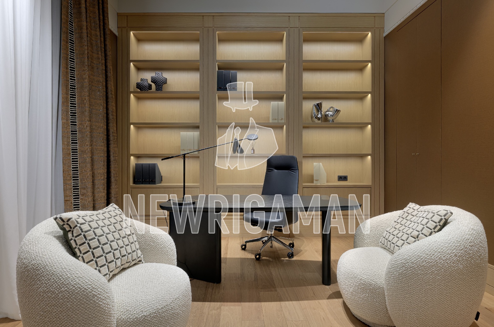 1 этаж - прихожая, гардеробная, гостевой с/у, кухня с выходом на террасу, столовая, гостиная, спальня с ванной комнатой, кабинет с с/у, постирочная, гараж на 2 м/м, котельная,