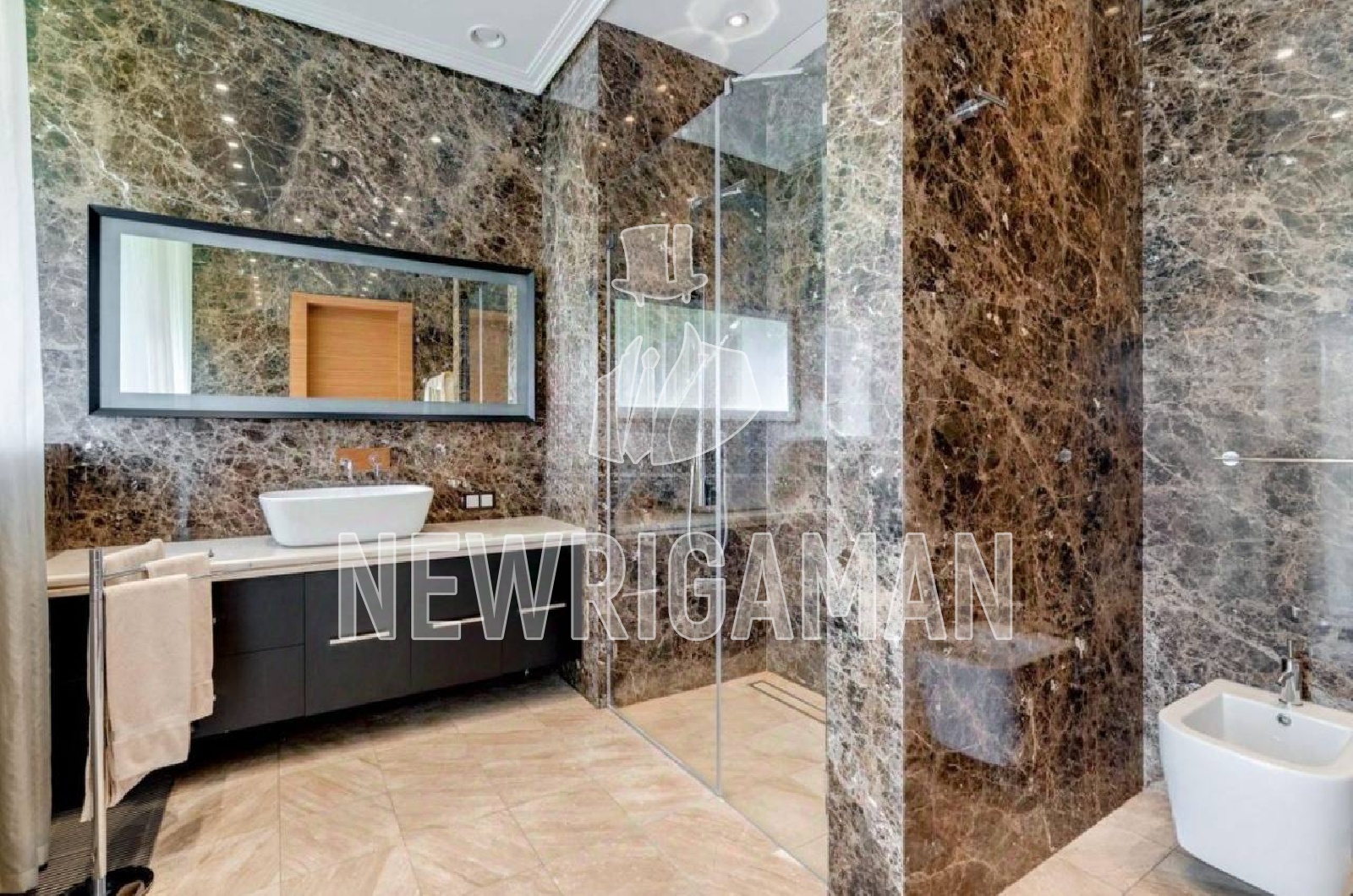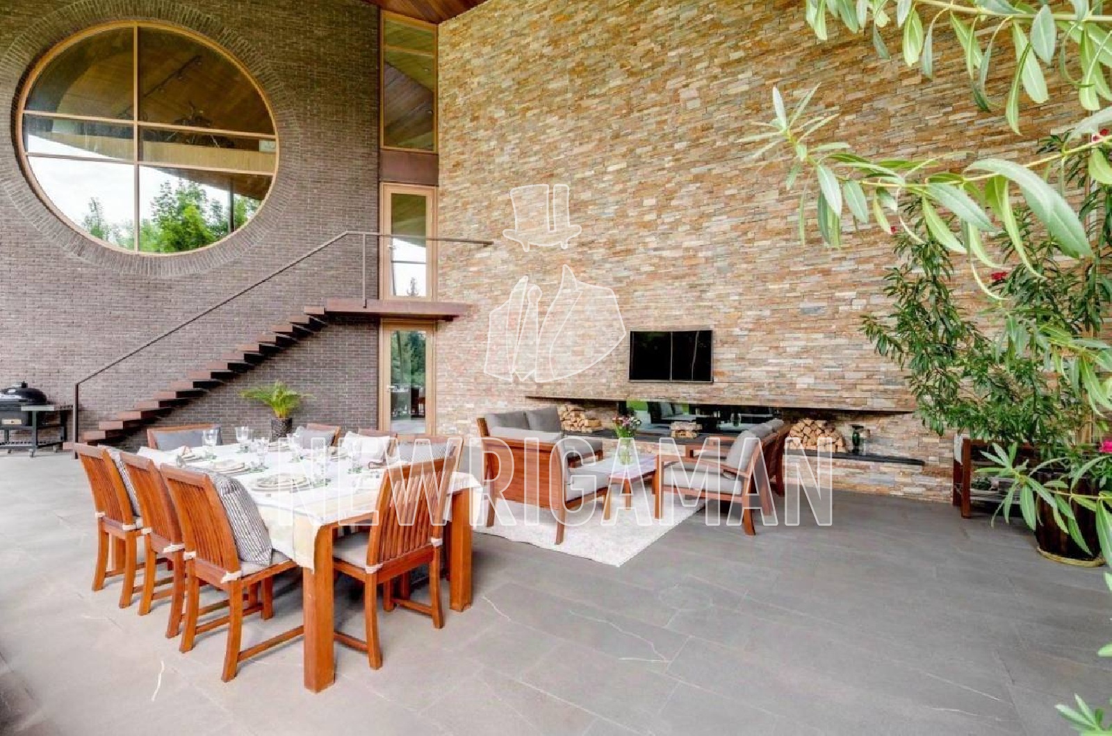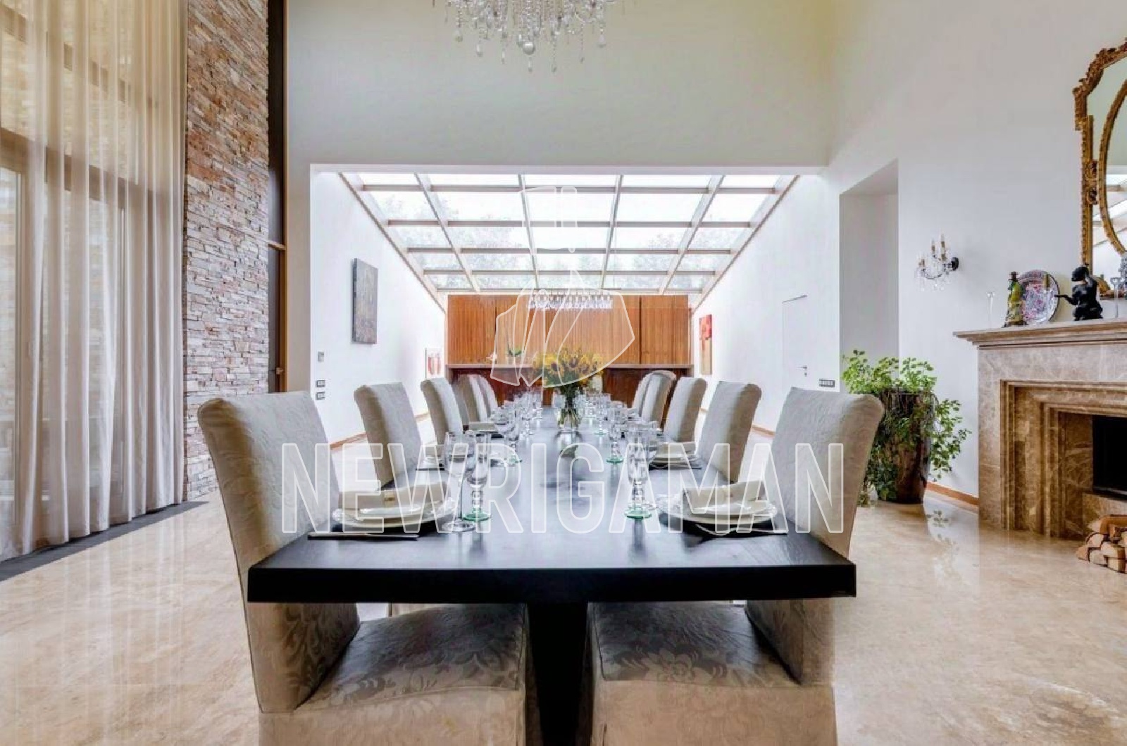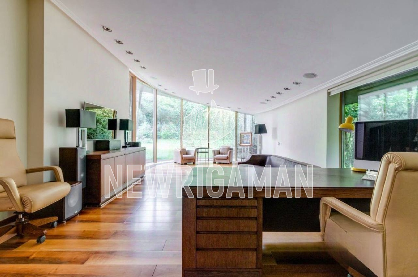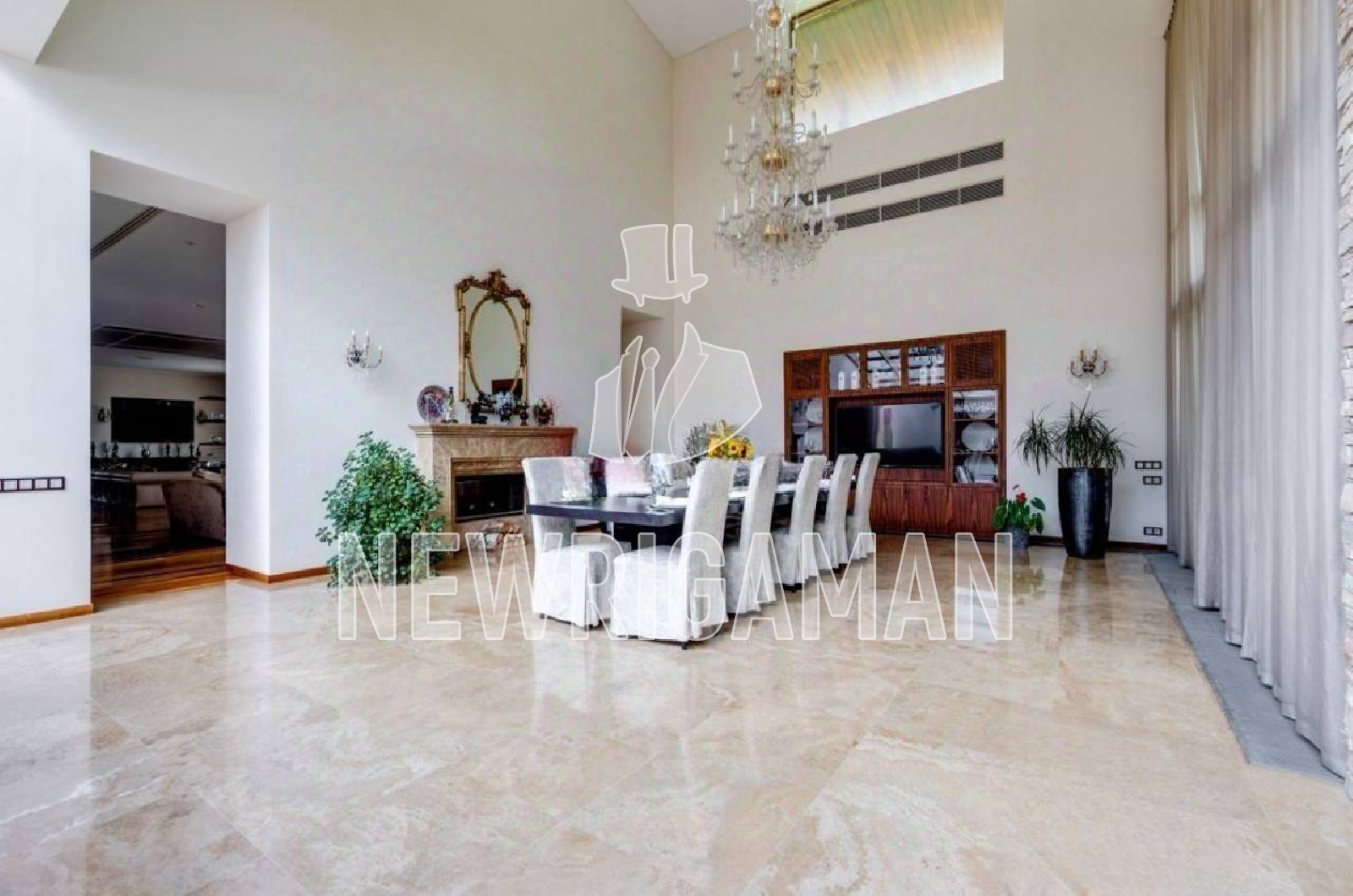 1 этаж - холл, гостевая спальня, гостиная с камином, столовая с баром-кухня и выходом на террасу зона для завтраков, 2 спальни со своими ванными комнатами, малый кабинет, основной кабинет, с/у, шубная, комната для водителя, подсобное помещение, рабочая кухня, постирочная, техническое помещение, блок для персонала: кухня, 2 комнаты, 2 с/у, котельная с выходом на участок, спа-зона, сауна, хаммам, купель, душевые,