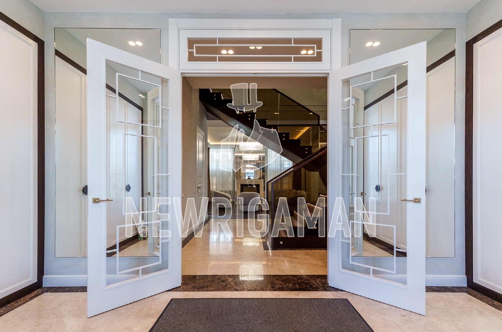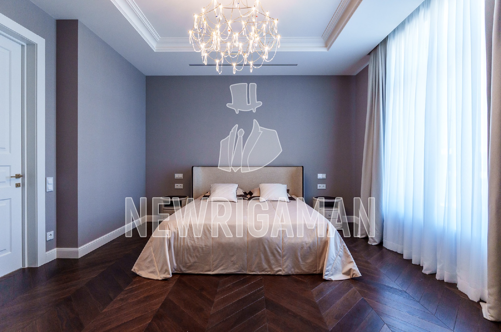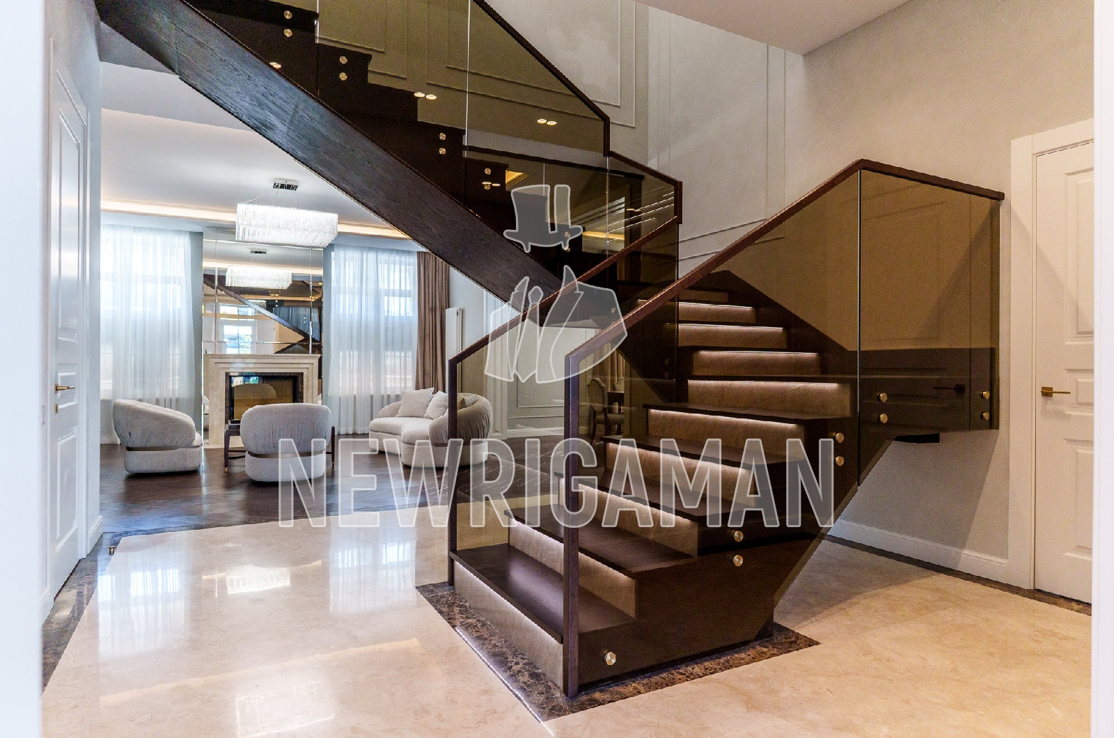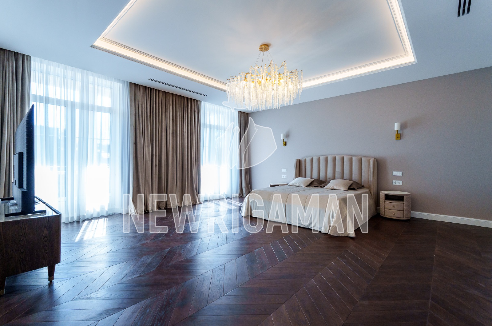 2 этаж - мастер-спальня с выходом на балкон, ванной комнатой и гардеробной, 2 спальни с с/у и гардеробной, блок для персонала с отдельным входом (кухня, 2 спальни, 2 с/у).