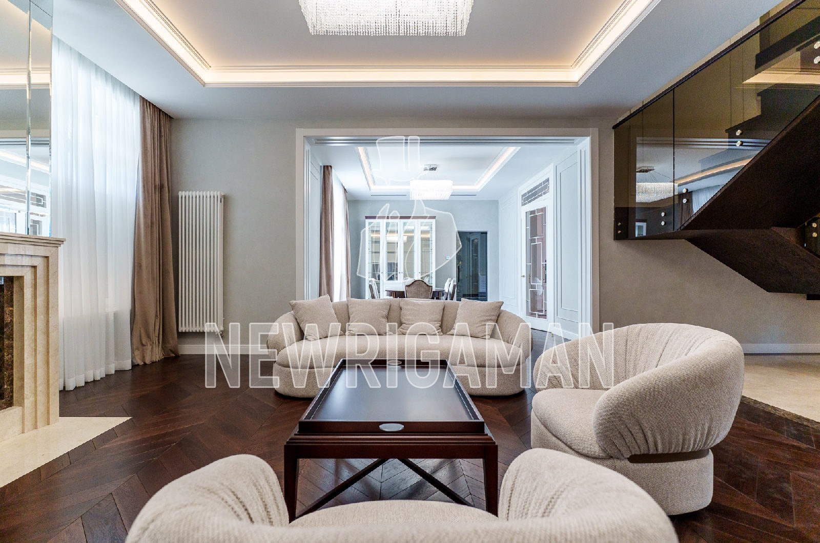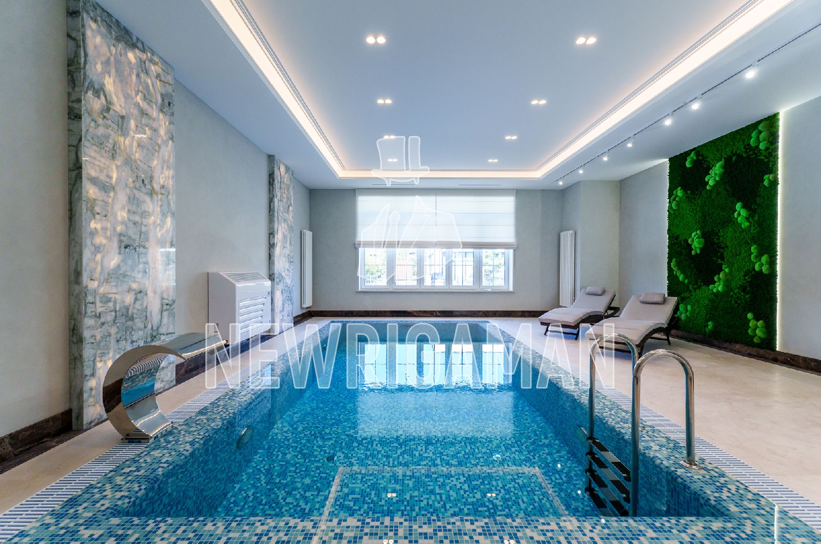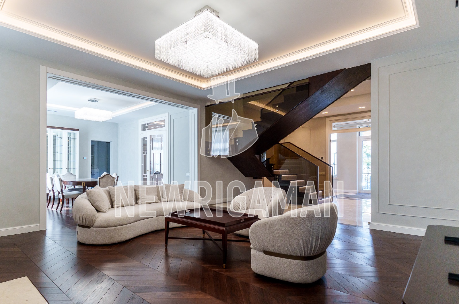 Продажа дома общей площадью 590 кв.м. Коттеджный поселок Мэдисон парк, Новорижское шоссе 24 км от МКАД. Новый кирпичный дом с отделкой под ключ из натуральных дорогостоящих материалов, в классическом стиле, облицован натуральным камнем - песчаником. Полы: дубовый паркет и мрамор. Установлены приточно-вытяжная вентиляция и кондиционирование, система умного дома, а также дровяной камин, облицованный мрамором. В доме имеется спа-зона с бассейном и сауной; 4 спальни, в каждой с/у и гардеробная, помещение для персонала. На участке 18 соток сделан ландшафтный дизайн. Постелен газон, высажены крупномеры, сделана подсветка. Дополнительно построена беседка для барбекю.